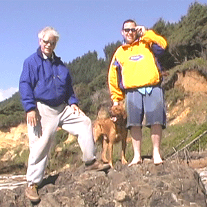 Dad and Saga survey the sea